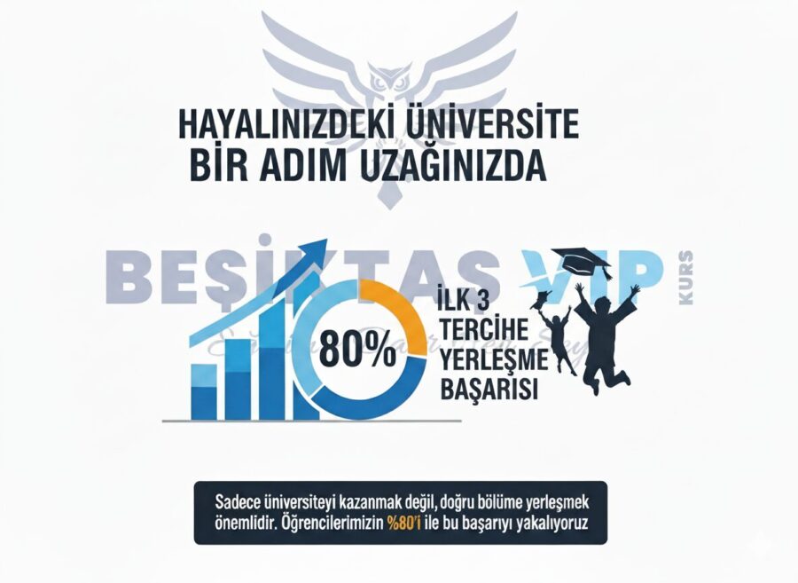YKS hazırlık sürecinde sunduğu stratejik tercih danışmanlığı ve kişiye özel koçluk desteğiyle Beşiktaş VIP Eğitim, , her 10 öğrencisinden 8'inin ilk üç tercihinden birine yerleşmesini sağlayarak bu alandaki iddiasını ortaya koymaktadır.
